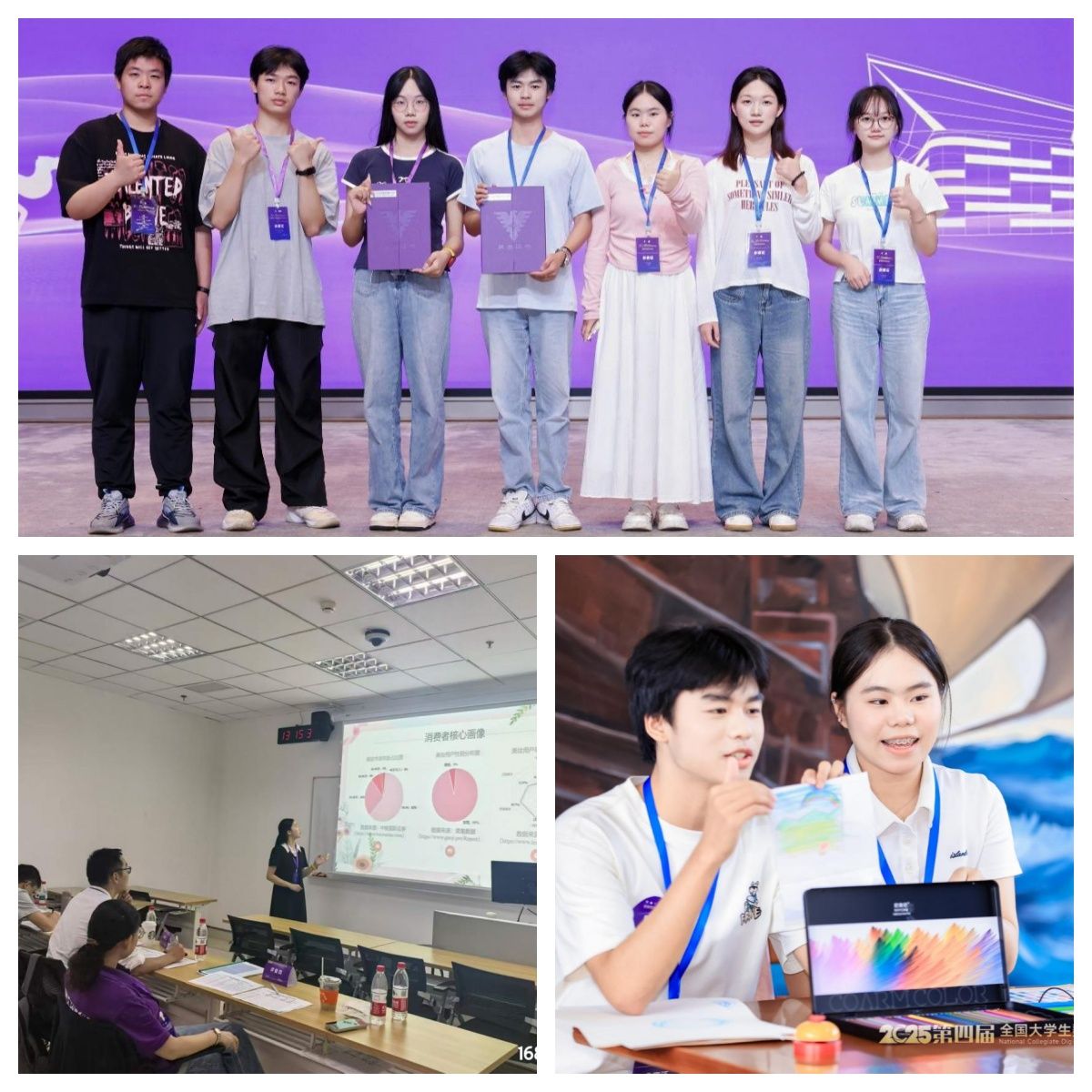 本网讯:9月26日—28日,“2025年第四届全国大学生数字贸易综合能力大赛”之1688大学生AI创业赛、尼奥尼跨境直播大赛全国总决赛分别在浙江大学紫金港校区、浙江外国语学院举行。我院李琍、胡明英两位老师指导的“不对不队”喜获国家三等奖,参赛学生由会计233班杨晰、会计233班简正、国贸242班许思莹、通信231班章又元、工商231班范语培等五位同学组成。邱景、李琍两位老师指导的“数趣探索家”团队喜获国家三等奖,参赛学生由英语232班付桂祥、方梦娟和数字经济242班陈思晴、曾泔甯、邱涵哲等五位同学组成。