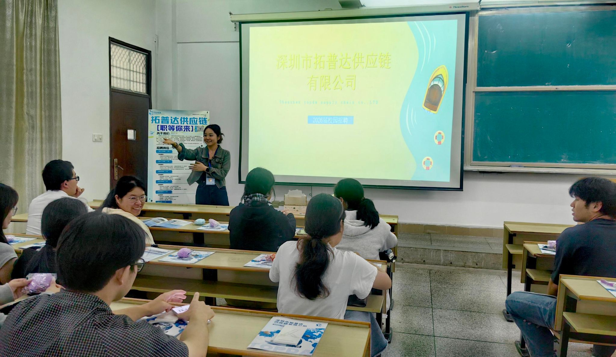 本网讯:为深入推进2026届毕业生就业工作,10月30日下午,我院在新民楼2303教室召开校园宣讲会,特邀深圳市拓普达供应链有限公司参会。本次宣讲会计划招聘20人,岗位覆盖国际经济与贸易、电子商务等专业,经济管理学院60余名毕业生到场参与。