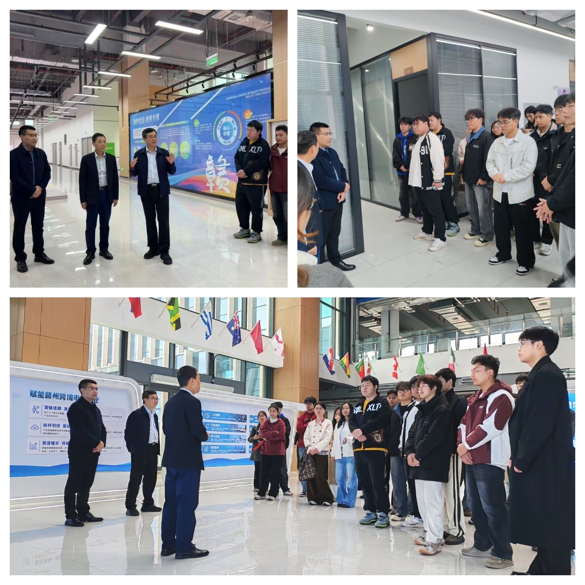 本网讯:11月5日,我校教务处(创新创业学院)和经济管理学院联合组织电子商务、工商管理和国际经济与贸易等3个专业师生共计48人前往赣州国际陆港、赣州大学生跨境工场开展实践活动,赣州国际陆港党工委副书记蔡湖南,赣州市跨境电子商务协会会长韩金玉接待学校一行。