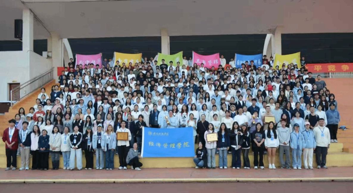 本网讯:伴随着激昂领奖音乐的缓缓落幕,学校第二十三届运动会正式画上圆满句号。在这场全校瞩目的体育盛会中,经济管理学院全体师生奋勇拼搏、积极参与,以饱满的热情和昂扬的姿态展现了经管学子的独特风采,也为校运会增添了浓墨重彩的一笔。经济管理学院旨在通过赛事全方位锻炼学生体能,进一步拉近师生距离,让“更高、更快、更强”的体育精神在校园中落地生根。