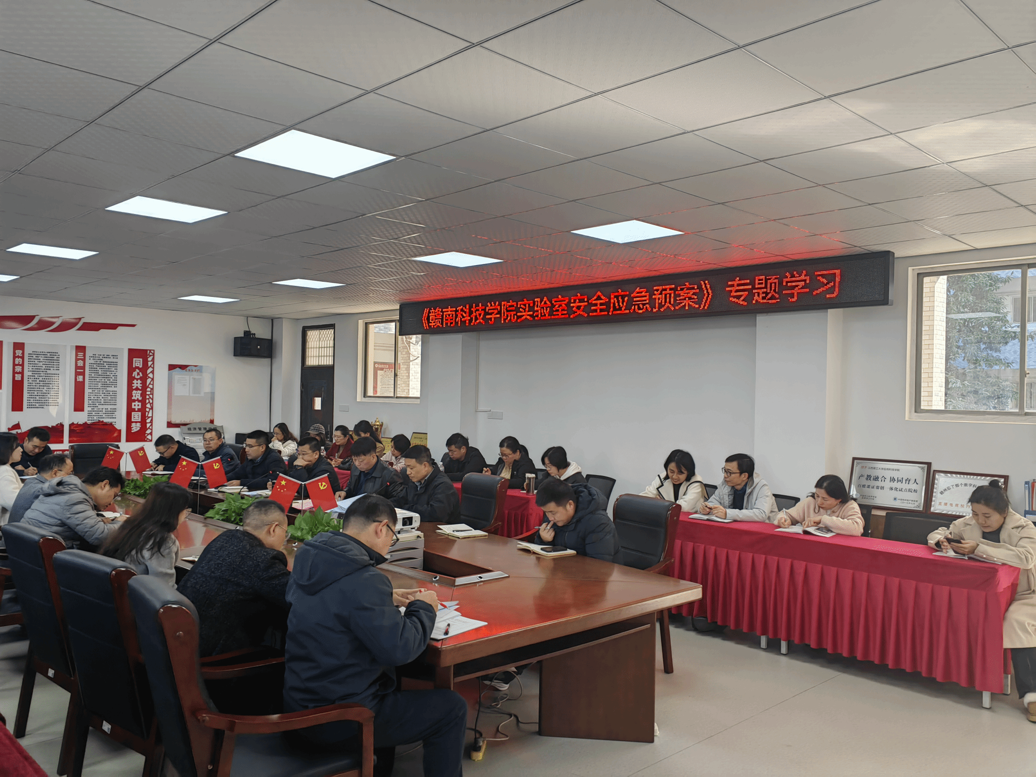 本网讯:为深入贯彻落实学校“安全第一、预防为主、综合治理”的实验室安全工作方针,进一步提升全院师生实验室安全防范意识和应急处置能力,切实保障实验教学与科研工作的顺利开展,12月30日下午,经管学院组织开展《赣南科技学院实验室安全应急预案》专题学习。学院领导班子成员、全体专任教师参会,会议由学院党委书记肖永鸿主持。