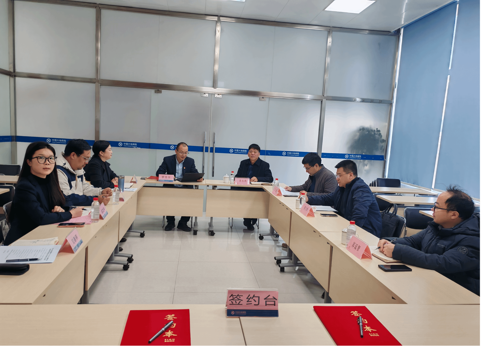 赣南科技学院经济管理学院党委书记肖永鸿、学院党委委员梁文学、王波、金融教研室主任郑延智一行抵达后,在中国大地保险赣州中心支公司副总经理及相关负责人陪同下,参观了公司职场、营业厅、办公区及理赔服务区域,深入了解了公司的业务布局、服务流程与岗位设置。