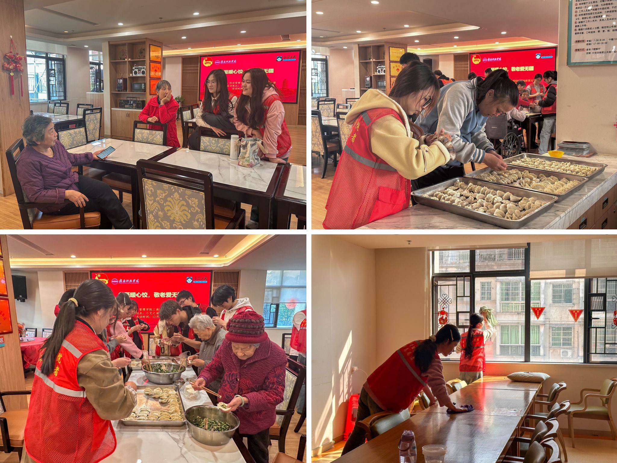 本网讯:为进一步弘扬中华民族的传统美德,培养大学生们敬老、爱老意识,12月21日,经济管理学院在小艾之家颐养中心开展“冬至暖心饺,敬老情谊浓”志愿服务活动,学院团委、工商231、232班团支部共计20余名同学参加此次活动。
