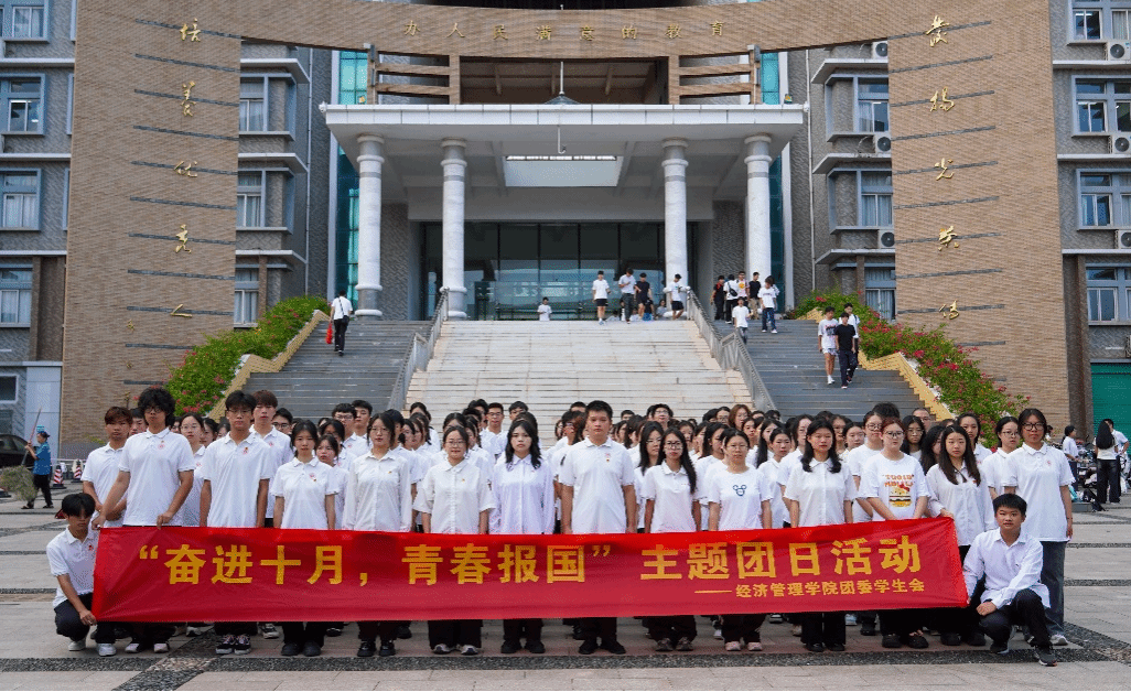 本网讯:10月13日清晨,我校在崇善楼北门广场举行“奋进十月,青春报国”主题升旗仪式。经济管理学院党委书记肖永鸿,工会副主席李丰,纪委综合办副主任刘锦龙,经济管理学院党委委员、副院长钟滨,经济管理学院党委成员,纪委综合办公室、工会、经济管理学院师生代表200余人共同参加仪式。