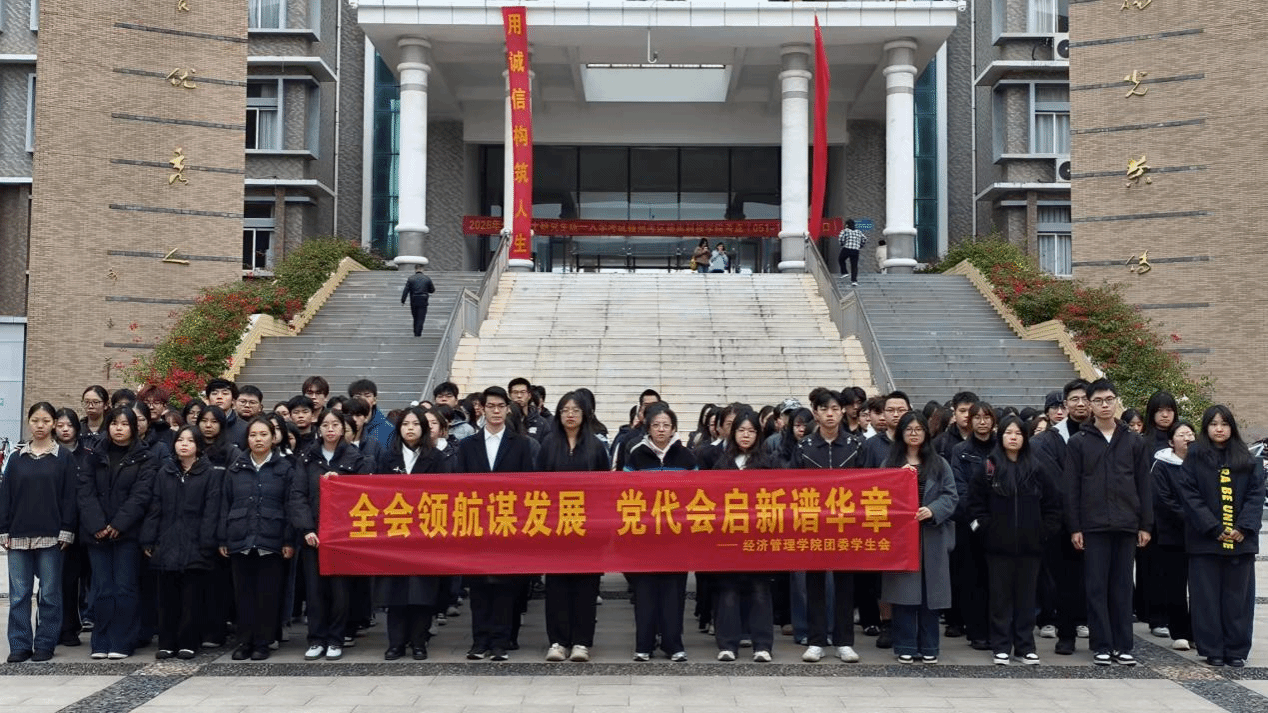 本网讯:12月22日上午,经济管理学院在崇善楼北门广场隆重举行“全会领航谋发展,党代会启新谱华章”主题升旗仪式。学院党委书记肖永鸿、学生工作部副部长黄敬宝,学院党委委员王波、葛志财出席仪式,学生工作处教师代表及经济管理学院师生代表共同参与。