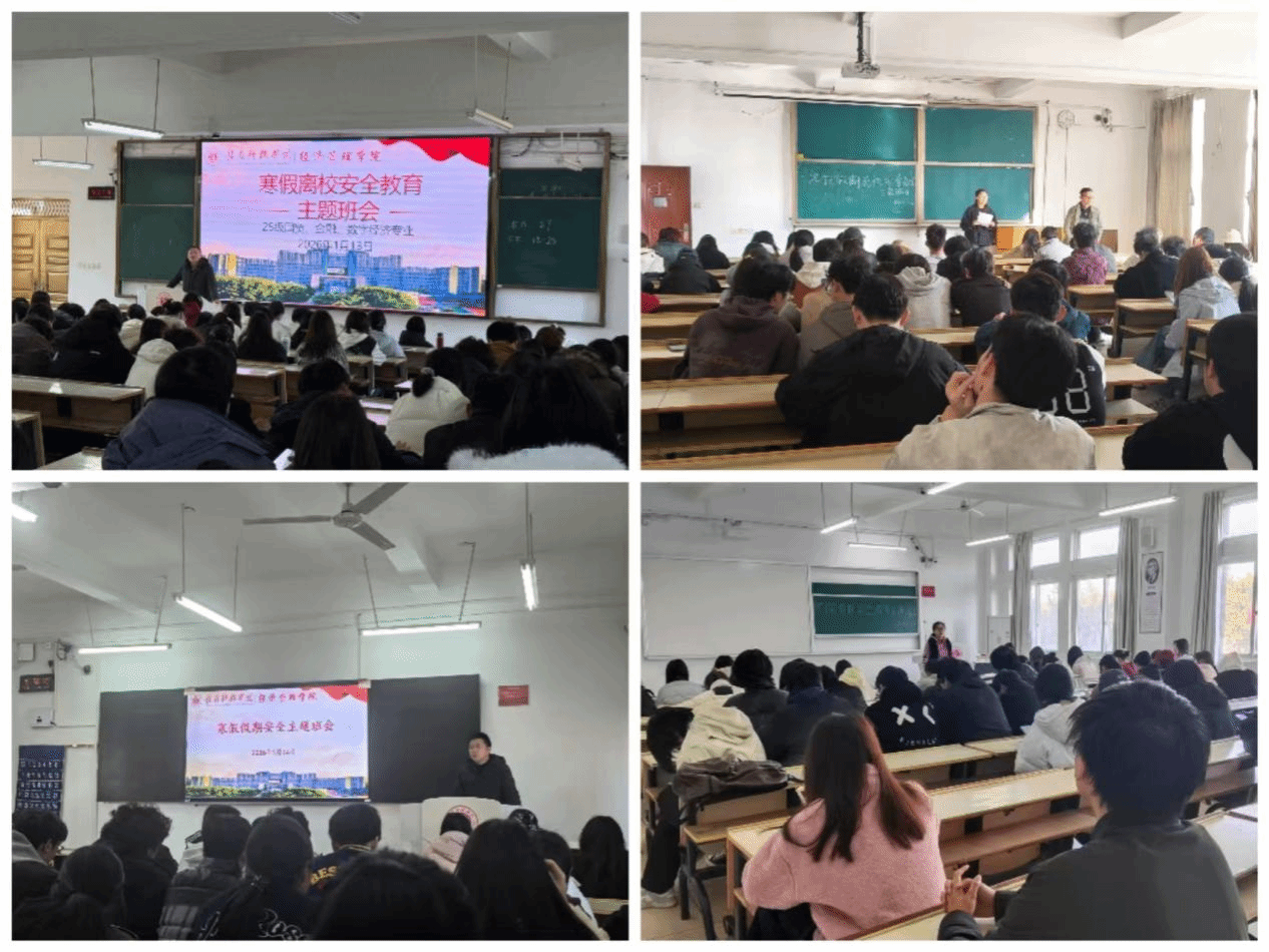 本网讯:随着学期临近尾声,为切实增强学生安全意识,确保全体同学度过一个平安、健康、充实的寒假,近日,经济管理学院统一部署,组织各班级辅导员(班主任)面向全体学生召开了寒假离校安全教育主题班会,全面筑牢校园安全防线。